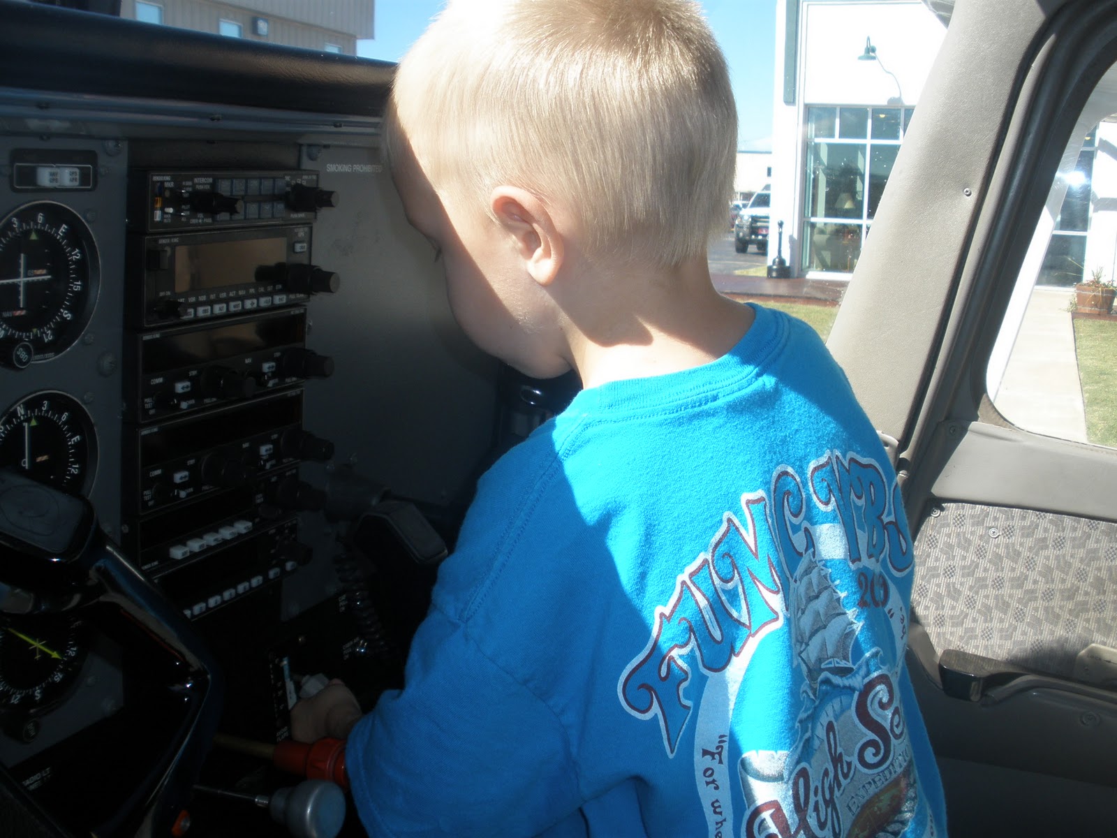 My cousin works at a small local airport, where they mainly fly personal planes and company jets out of. She invited the kids and I to come check it out as they had a B-17 there for a display for this weekend where they'll also be offering rides for $430/person! It's an old plane that was used in WWII though so it's pretty cool. They weren't able to let us inside at this time (it'll be open this weekend) but we did get to see inside one of their other smaller planes.....it was still really cool for the kids!